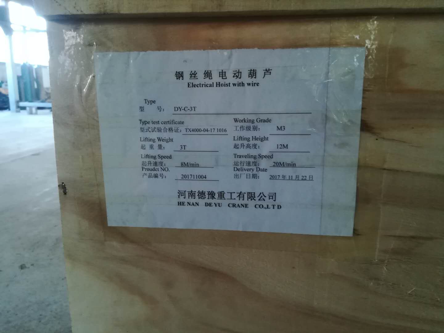 實力代表產(chǎn)品DY系列歐式電動葫蘆受到起重機使用單位認可