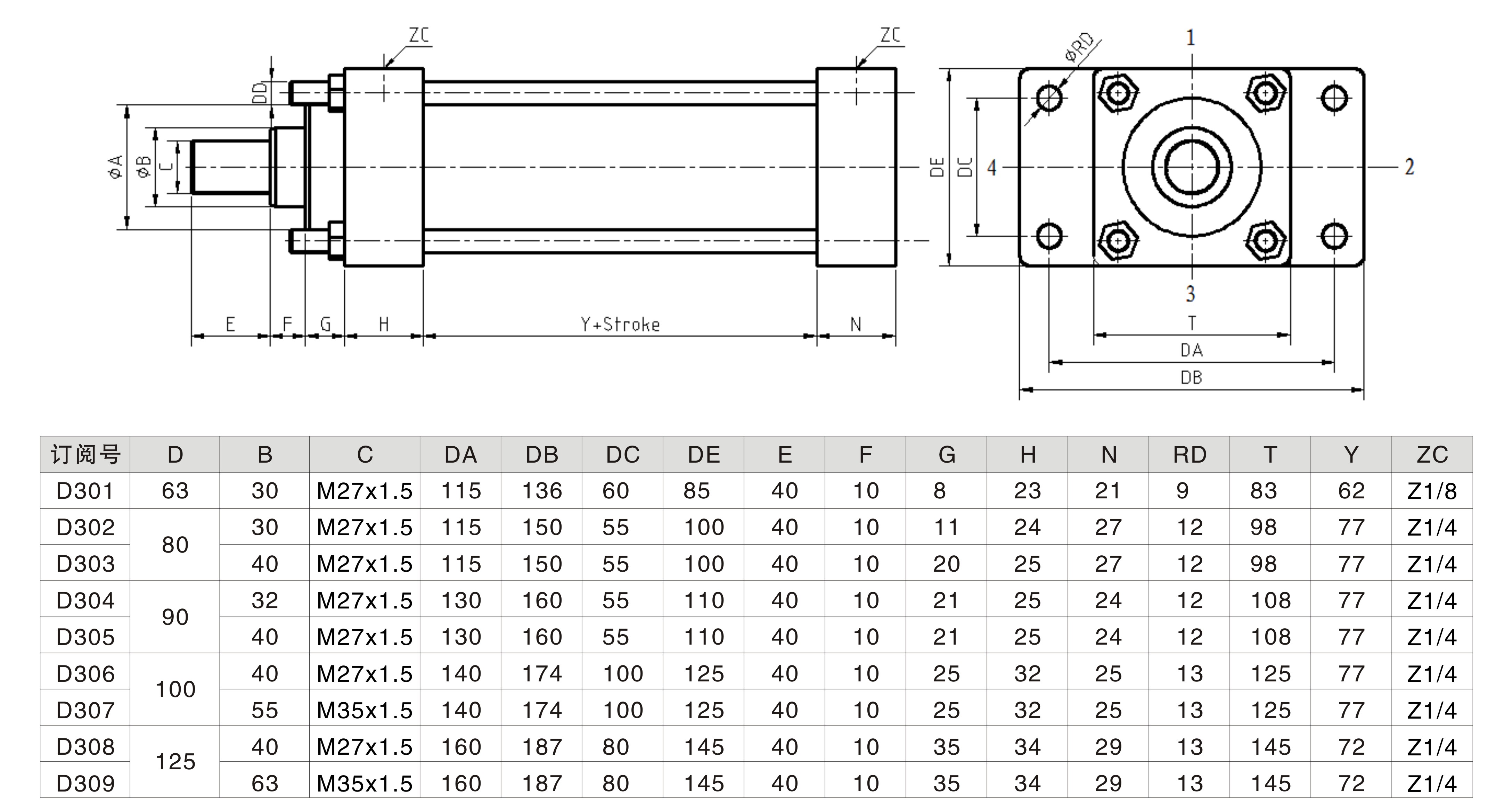 以下為后法蘭安裝的低壓拉桿液壓缸的尺寸圖及參數(shù)。